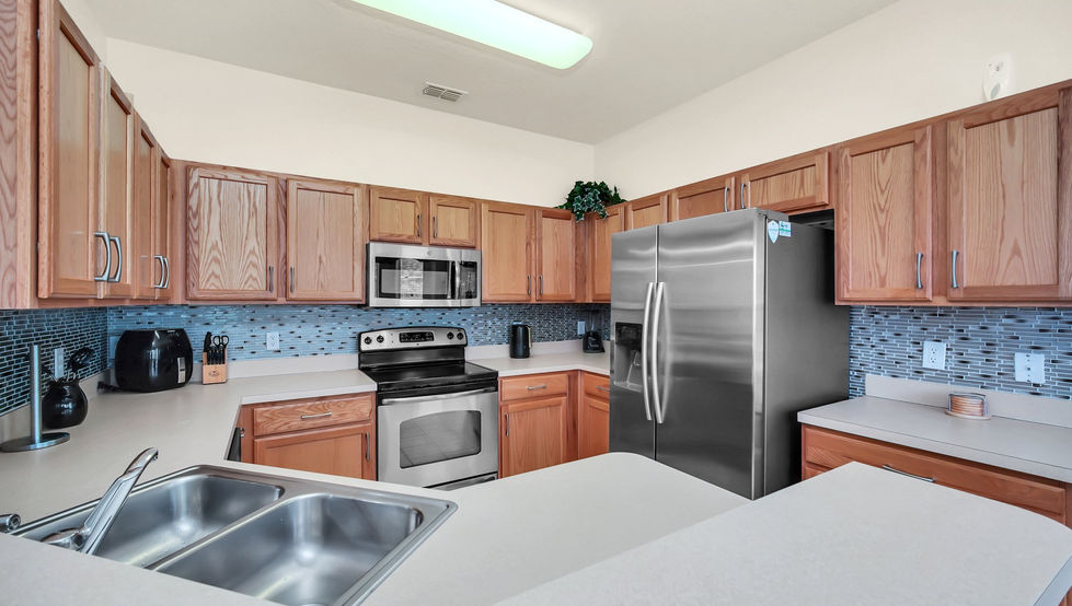 - Fully equipped kitchen: cookware, oven, refrigerator, microwave, stove, dishwasher, blender, toaster, coffee maker, and more.